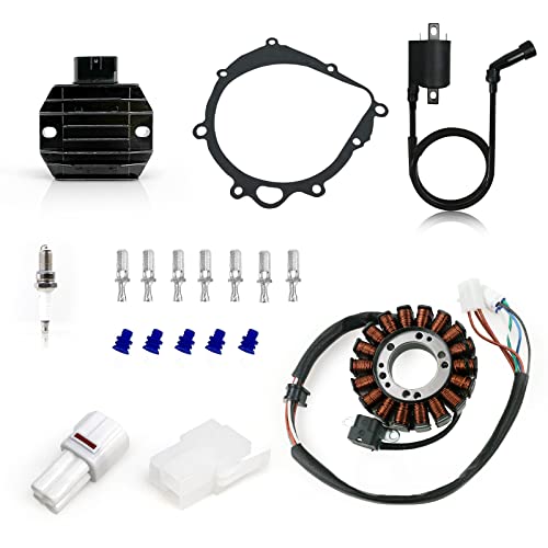 Ayiddue Regulator Rectifier Ignition Coil Stator Spark Plug Cover Gasket for Yamaha Raptor 660R YFM660R 2001-2005 5LP-81410-02-00 4XE-81940-12-00 5LP-15451-00-00 5GT-81960-00-00 3KJ-82310-10-00 YF-82370-00-00